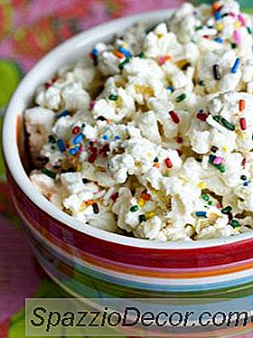 Smeltet hvitt sjokolade godteri, kake smør og sprinkler gir denne søte popcorn kake-lignende yumminess med færre kalorier!